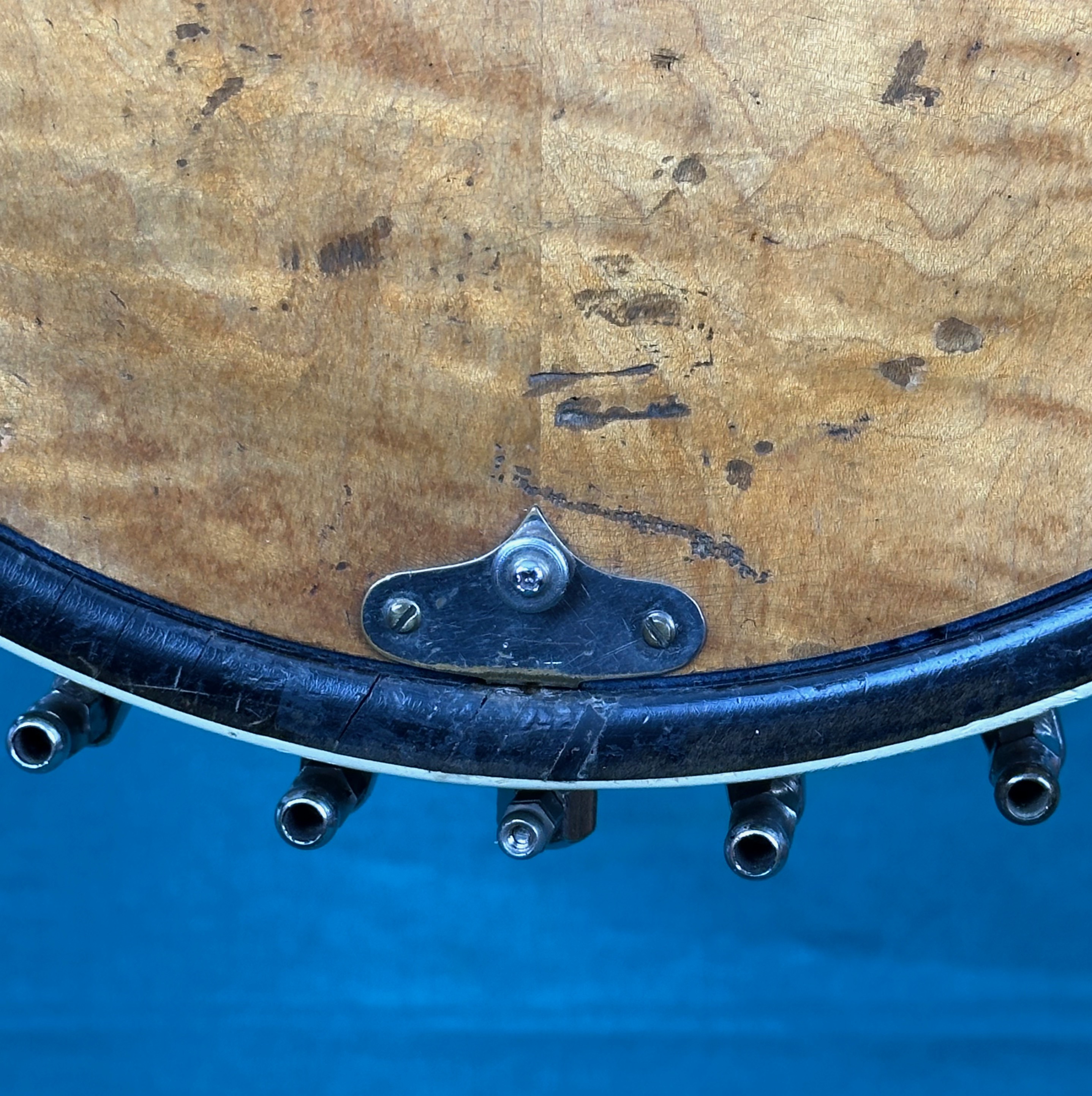 10 1/2" maple rim with calf-skin head and large tube tone-ring.