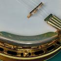 Parts on this banjo are bright and shiny gold.